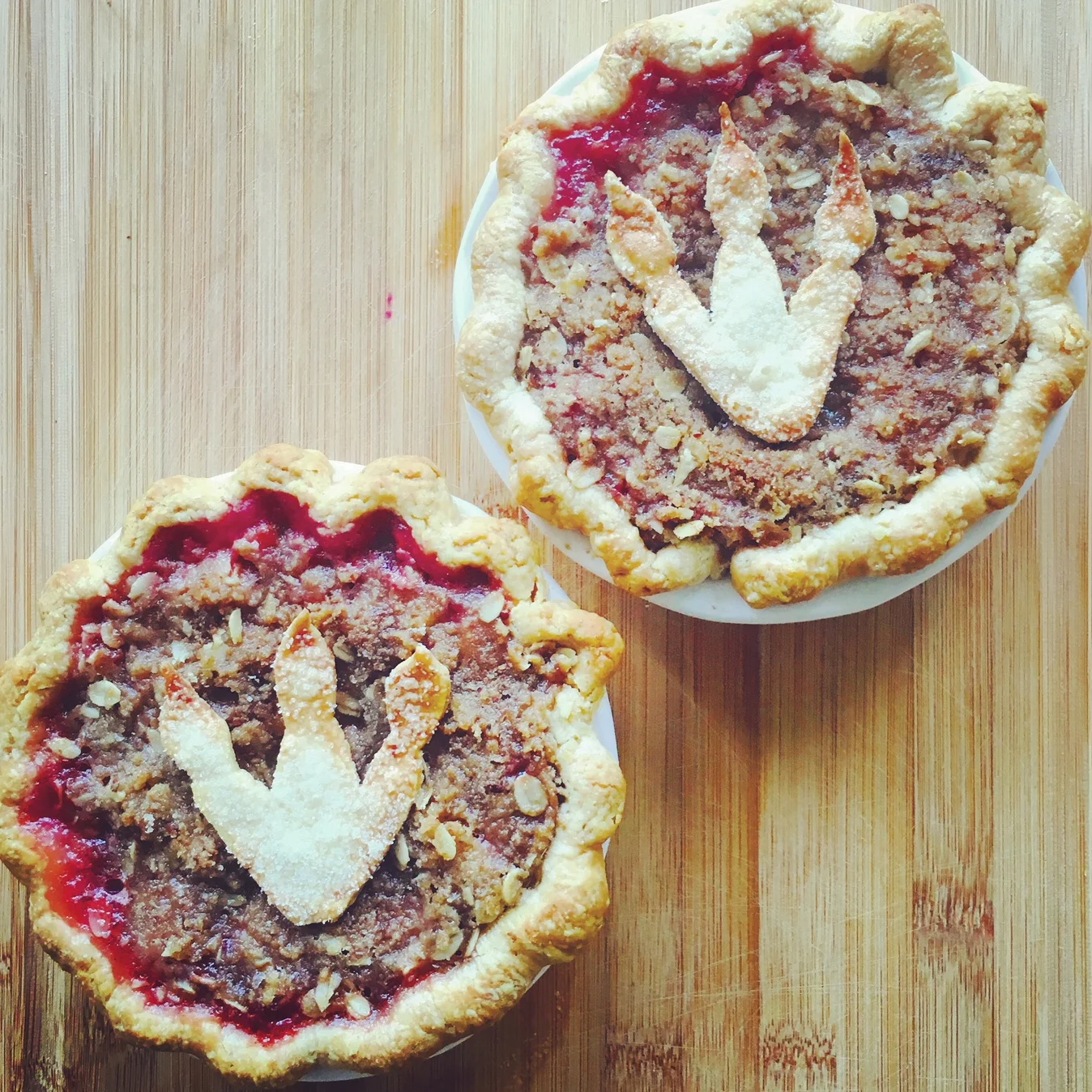 Raspberry Rhubarb Dino Tracks Mini Pies